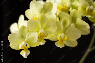 Yellow orchid in full blossom on black background
