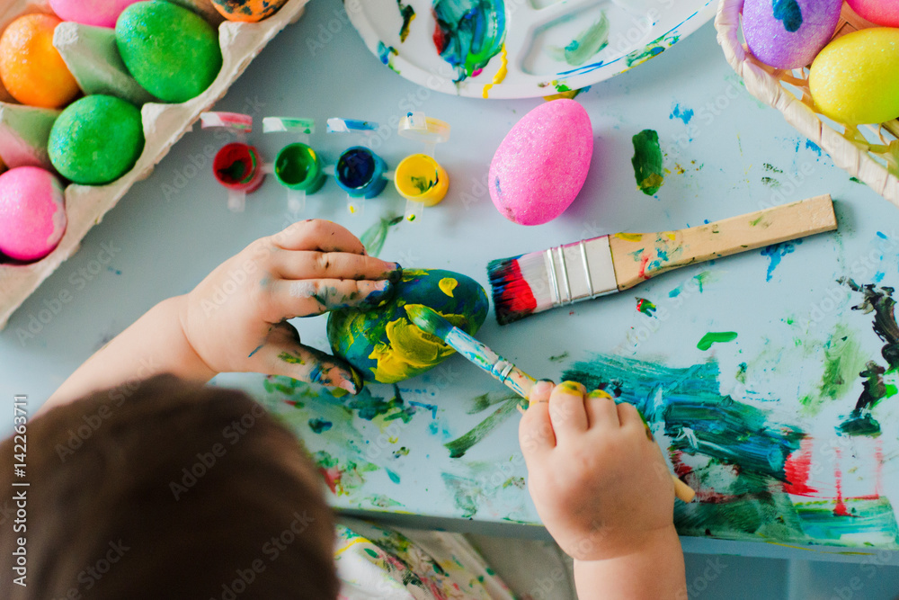 Baby Painting Easter Eggs