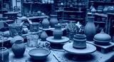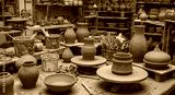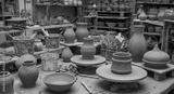 Artisan Pottery Workshop Unfired Clay Vessels Tools and Kiln Preparation