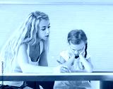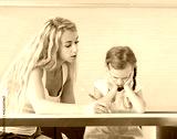 Parent helps the child to do homework