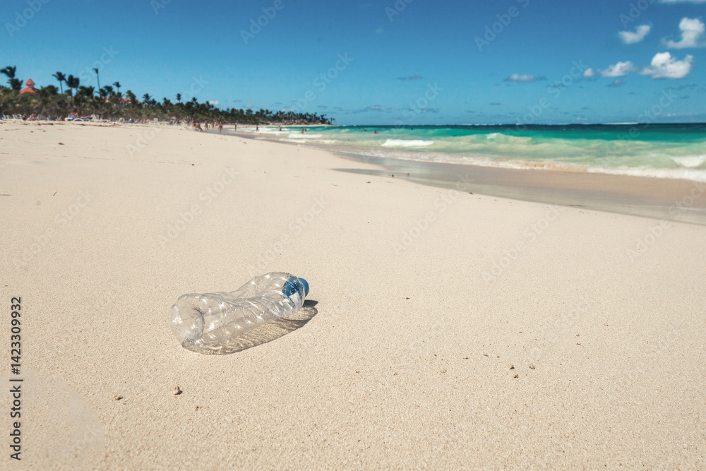 Plastic bottle floating in the Sea in Beach with dirty Coast