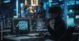 Asian Researcher Making a Quantum Computing Experiment, Monitoring Live Artificial Intelligence Data on Computer Screen, Running Software Code in Terminal Window. Developer Solving a Problem