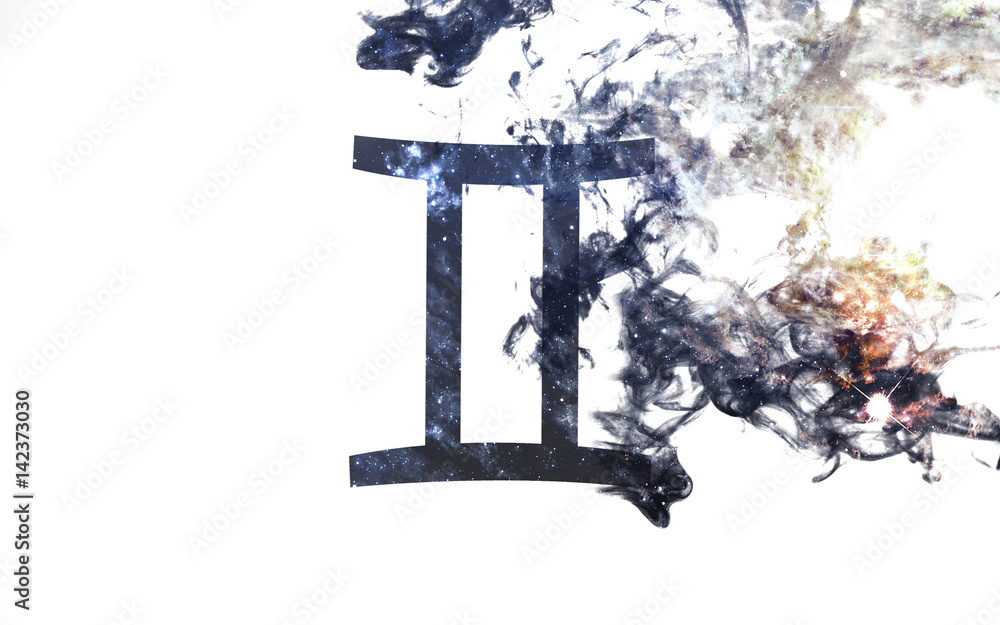 Zodiac sign - Gemini. Dust of the universe, minimalistic art. Elements of this image furnished by NASA