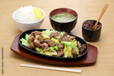 Stir-fried diced pork skirt steak and cabbage set meal, Japanese food
