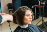 Male hairdresser is preparing for haircut of Beautiful woman in the beauty salon.
