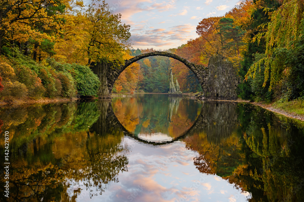 Devil's Bridge in Kromlau in the autumn rhododendron park