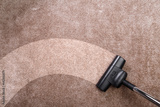 Vacuuming carpet with vacuum cleaner. Housework service. Close up of the head of a sweeper cleaning device.