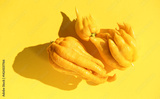 Buddha hand citrus fruit. Yellow Organic fingered citron, Buddha's hand citrus fruits with fingers of plant over yellow background. Aromatherapy concept, top view