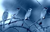 Grey Hypocolius on acacia tree in the morning hours at Bahrain