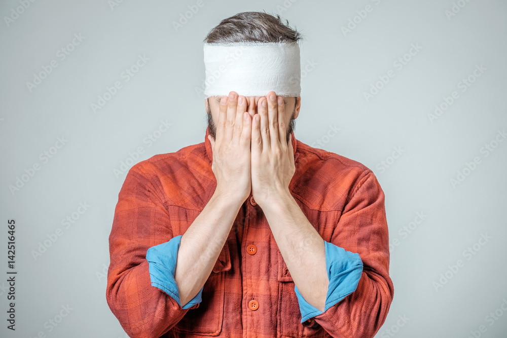 Portrait of man with bandage