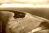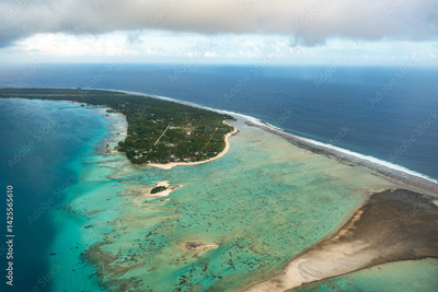 Aerial view of Rangiroa atoll, French Polynesia, with lagoon and cloudy sky