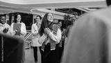 Friendly colleagues welcoming a new team member in a modern law firm environment