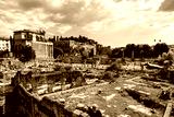 Roman ruins in Rome, Forum (Foro Romano). Popular touristic destination. Italy
