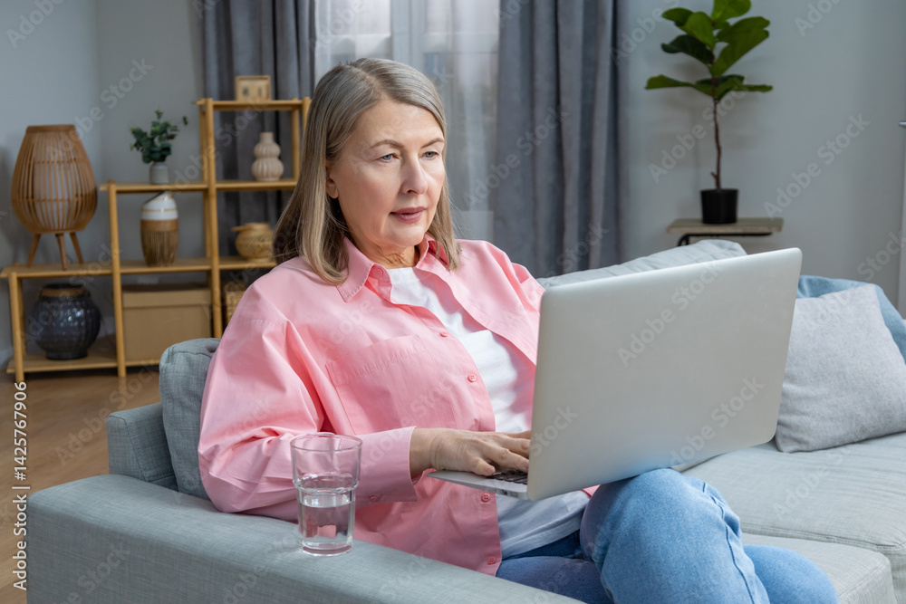 Mid aged woman in pink shirt feeling unwell and having a headache