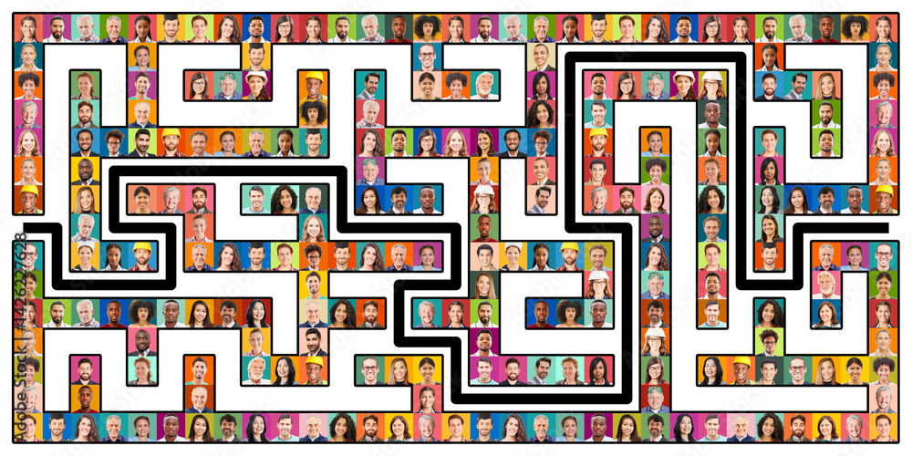 Panorama Labyrinth erwachsener Menschen vieler Generationen