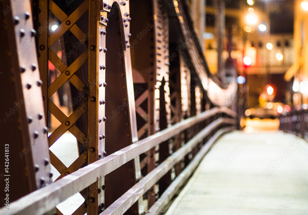On Chicago Bridge with Shallow Deep of Field and Bokeh in the background