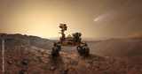 Mars Perseverance Rover is exploring surface of Mars. Perseverance rover Mission Mars exploration of red planet. Space exploration, science concept. .Elements of this image furnished by NASA.