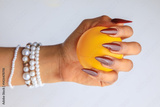 Elegant Female Hand Holding a Yellow Stress Ball