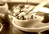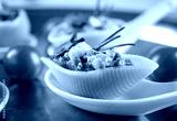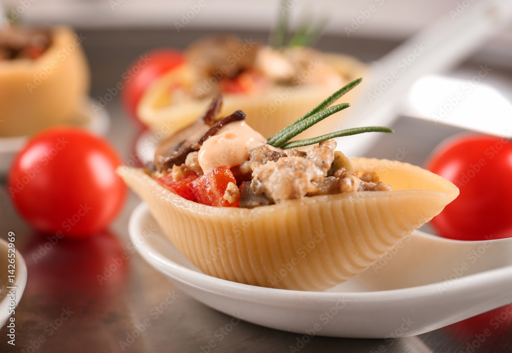 Ceramic spoon with stuffed pasta, closeup