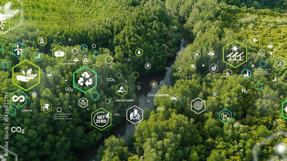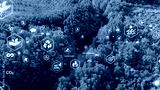 Green forest, bird's eye view of green trees in the forest. Carbon neutrality and net zero emissions concept. Sustainable green global environment.