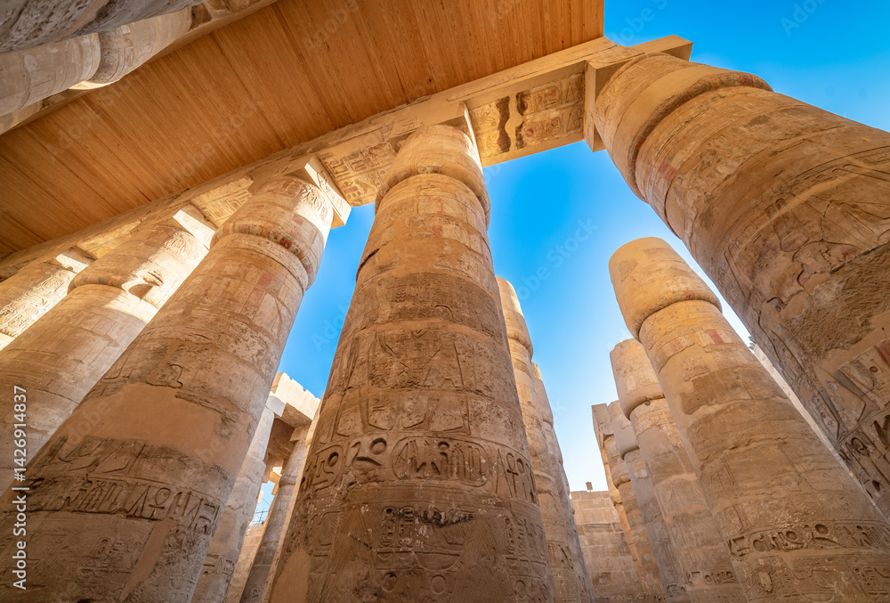 Columns of Great Hypostyle Hall in Karnak Temple Complex, UNESCO World Heritage Site, Luxor, Egypt..
