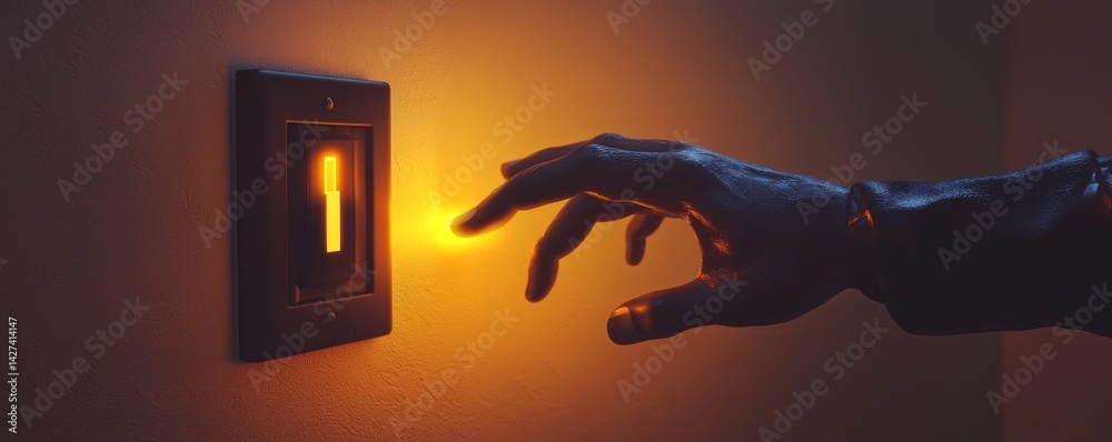 A robotic hand reaching for a light switch, symbolizing the future of automation.