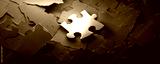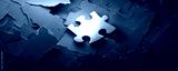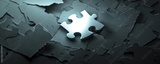 A single puzzle piece stands out among scattered dark puzzle pieces in a creative layout.