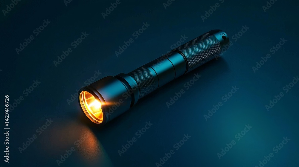 A sleek black flashlight emits a warm glow on a dark surface, showcasing modern design.