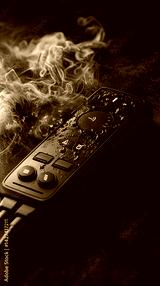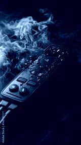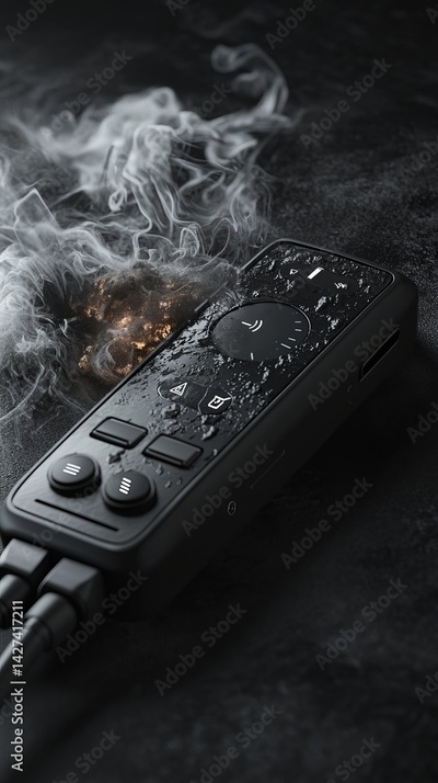 A sleek, modern remote control emitting smoke, showcasing unique design and innovation.