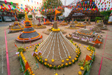 PHITSANULOK, THAILAND - April 10,2025: Thai people come to build the Sand Pagoda for return the sand to the temple on Songkran festival at Ratchaburana temple in Phitsanulok Thailand.