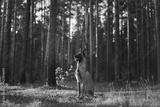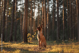 A Belgian Malinois sits gracefully in the warm glow of a forest. The serene composition highlights the harmony of the dog with its natural surroundings.