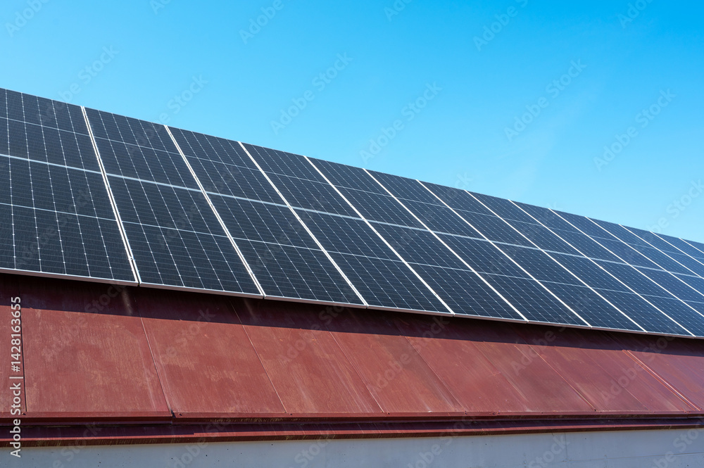Solar panels converting sunlight into renewable energy on a roof