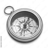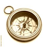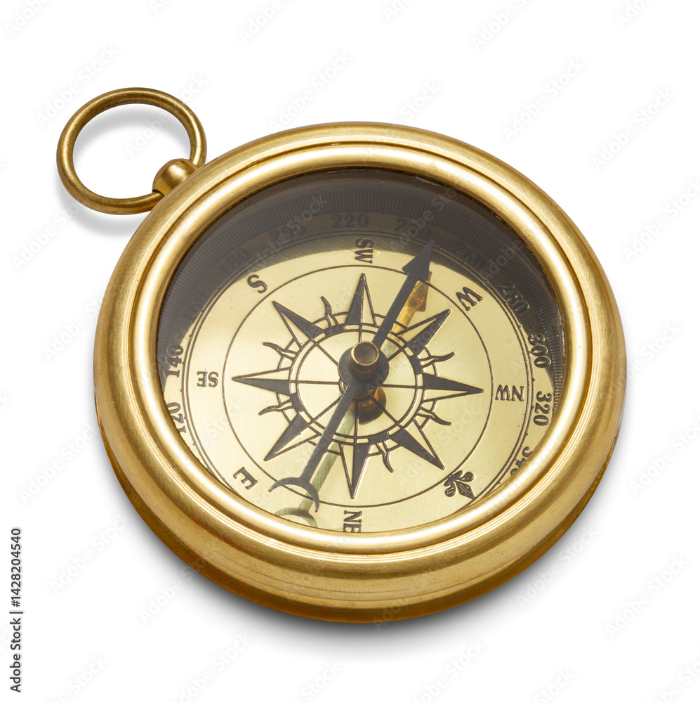 Old-fashioned brass compass isolated on white background