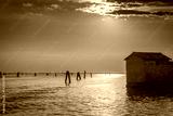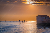 Old abandoned building of San Giacomo in Paludo island in Venice lagoon at sunset