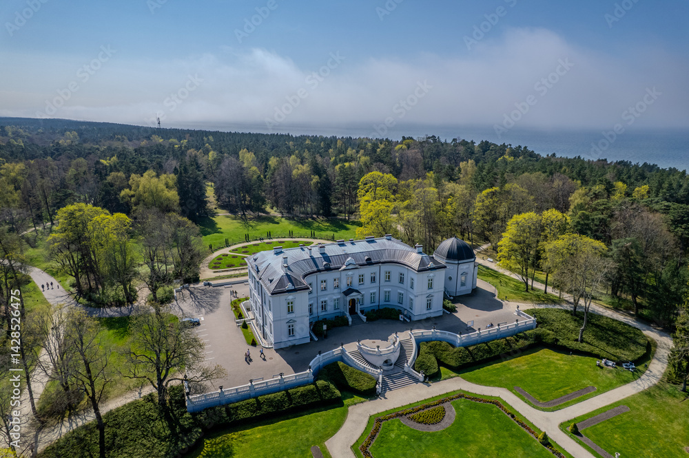 Aerial spring view of Birute park in Palanga, Amber museum, Lithuania