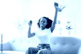 Black woman, pregnancy test and confused, nervous and waiting for results on a sofa in her home