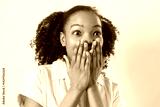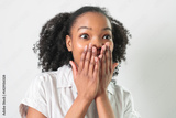 Pretty female dark skin posing isolated against white blank wall background
