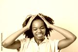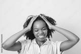 Pretty female dark skin posing isolated against white blank wall background