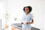 Portrait of young black Rehabilitation woman physiotherapist on a physio center