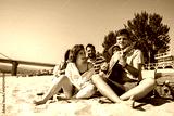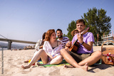 Friends enjoying music and cocktails on the beach
