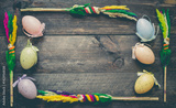 Wielkanocne jajka oraz ozdoby swiateczne z miejscem na napis.