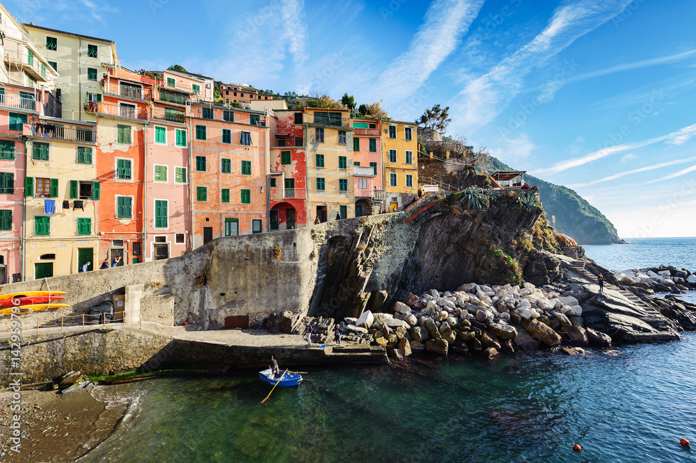 Colour architecture of Riomaggiore town in Cinque Terre National park, Italy