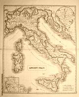 Italy. Ancient map of the world . Published by George Philip and son at London 1857 and are not subject to copyright.