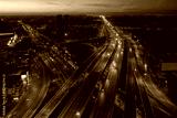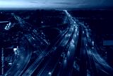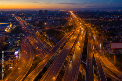 Aerial top view of transportation with Expressway, Road and Roundabout, multilevel junction traffic highway-Top view. Important infrastructure and transport in big city, Bangkok Thailand.