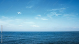 Calm blue ocean sea waves in sunny day. Tropical seascape horizon. Nature background.