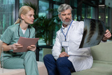 Two doctors sitting next to each other and discussing xray results