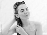Beautiful young woman washing hair in bathroom at home