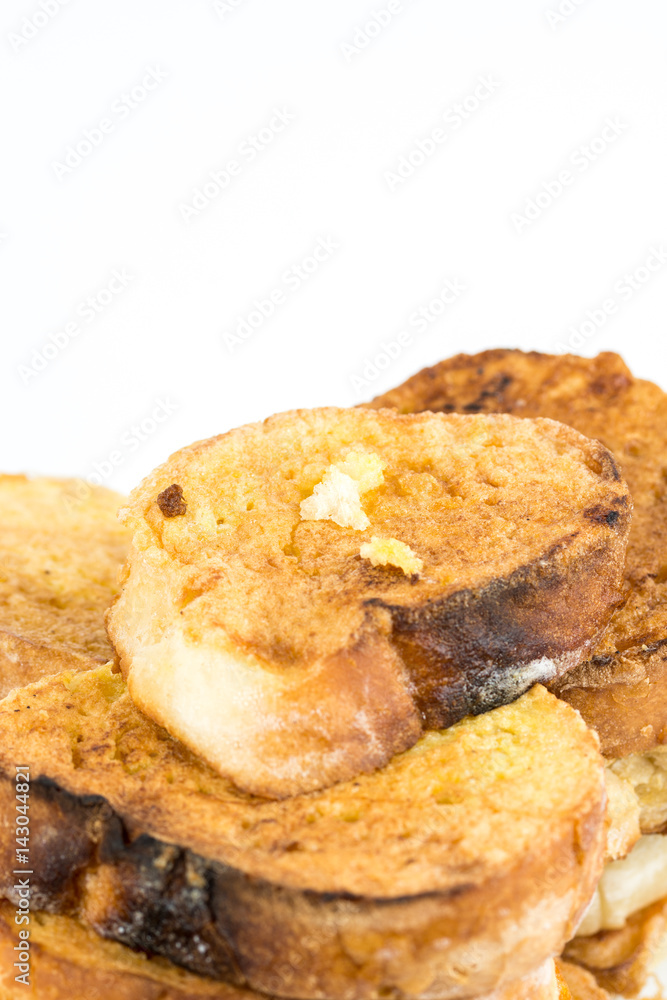 French toast bread on eggs isolated over white background