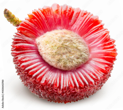 Red Yangmei or Arbutus berries fruit isolated on white, Red Bayberry, Yumberry, Yamamomo, Waxberry on white with work path.