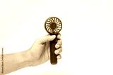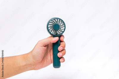 Hand Holding Mini Hand Fan on White Isolated Background